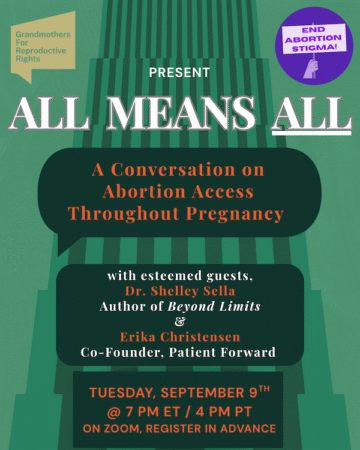 All means All: A conversation on Abortion Access Throughout Pregnancy. With esteemed guests Dr. Shelly Sella and Erika Christensen. To Register